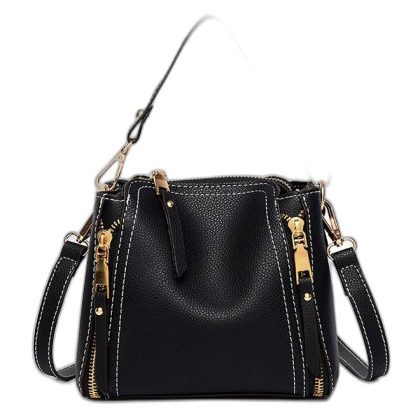 حقيبة كروسبودي سوداء بتصميم سحّاب متعدد وأسلوب أنيق. |