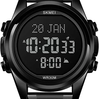 ساعة الآذان للرجال مع بوصلة القبلة والتقويم الهجري واختيار المدينة. مقاوم للماء ومجهز بمنبه وإضاءة خلفية وشاشة عرض أيام الأسبوع. هدية مثالية للرجال المسلمين. |
