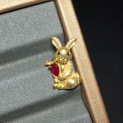 عرض خاص جديد قلادة الارنب فضة 925 مطلية بالذهب ياقوتة دم الحمام الطبيعية مقاس 3*5 ملم |