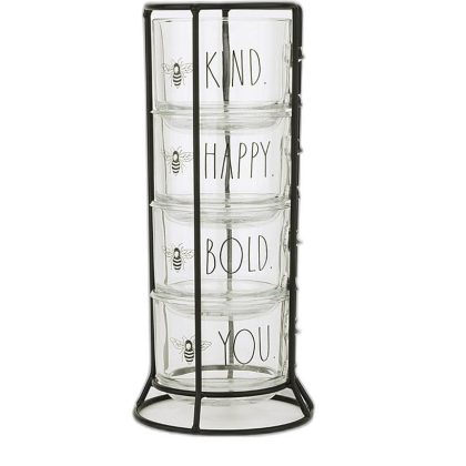 × طقم أكواب زجاجي شفاف 18 أونصة بتصميم نحلة - 4 قطع. 18.94 كيدو