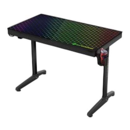 مكتب ألعاب بإضاءة RGB مصنوع من الزجاج المقسى. |