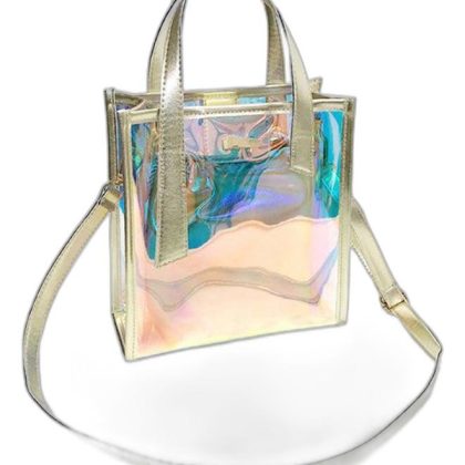 حقيبة كروسبودي متعددة الألوان بتصميم ليزر شفاف. |