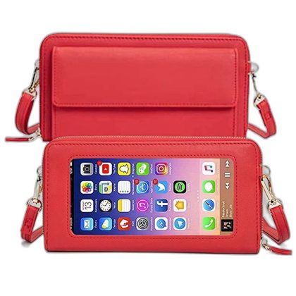 حقيبة هاتف صغيرة كروسبودي مع محفظة بشاشة تعمل باللمس وفتحات لبطاقات الائتمان، مثالية للمحافظ والمحافظ النسائية. |