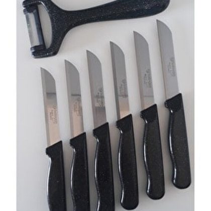 مجموعة سولينغن مكونة من 6 سكاكين فضية للفاكهة السوداء ومقشرة مستقيمة |