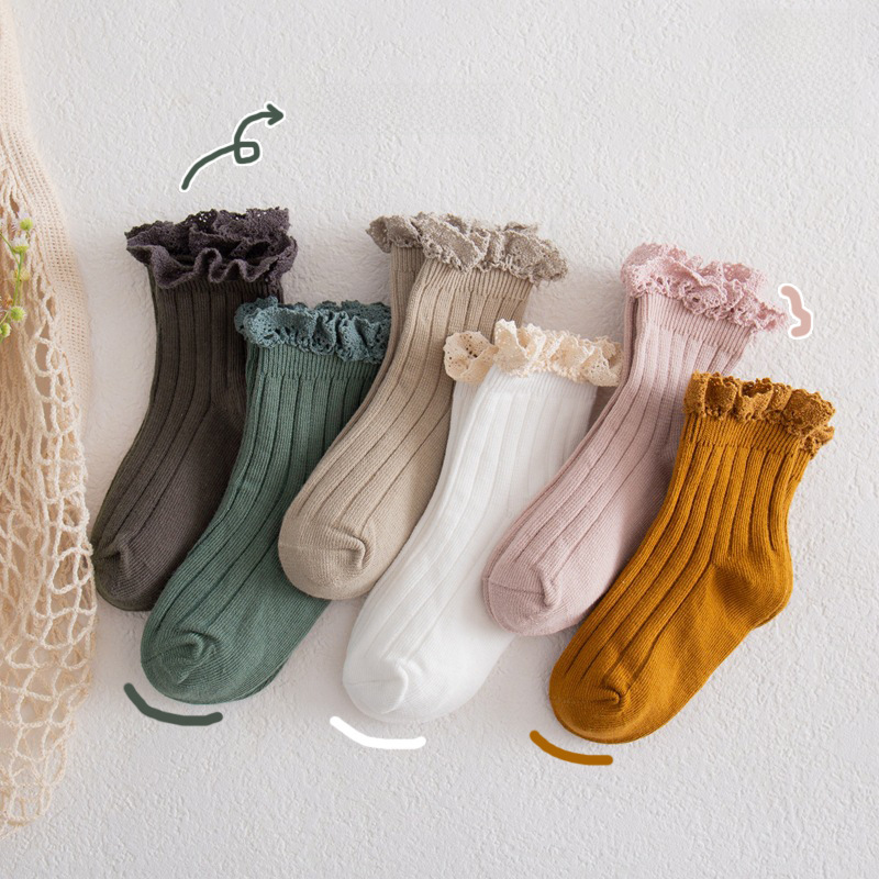 Zhuji 2023 جديد الربيع والخريف الدانتيل الدانتيل الأطفال الجوارب الكورية نمط الفتيات الأميرة الجوارب النمط الياباني جوارب قطنية العصرية
