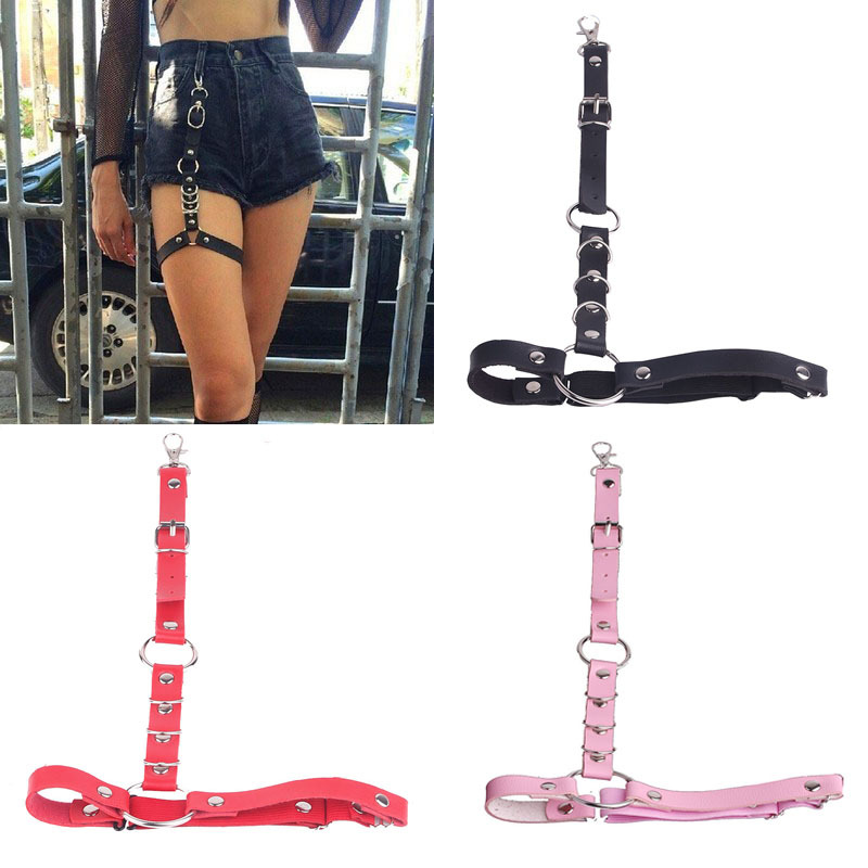أزياء أوروبية وأمريكية Harajuku PENGKE، حلقة ساق جلدية مثيرة ذات أداء KTV، داكنة داكنة ومتوافقة تمامًا مع أداء KTV