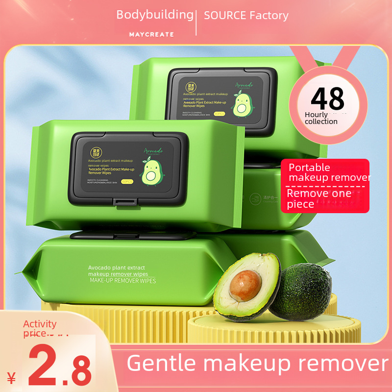 مناديل مزيل مكياج الأفوكادو من كمال الأجسام، يمكن التخلص منها، 60 قطعة، منشفة تنظيف قطنية للتنظيف TikTok بنفس النمط