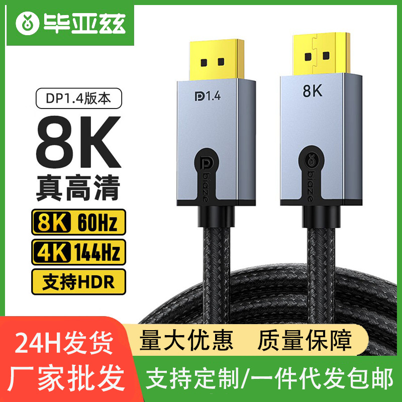 خط Biaz النحاسي النقي DP 1.4 إصدار 4k144hz/2k165hz/8K HD خط فيديو خط اتصال ذكر إلى ذكر