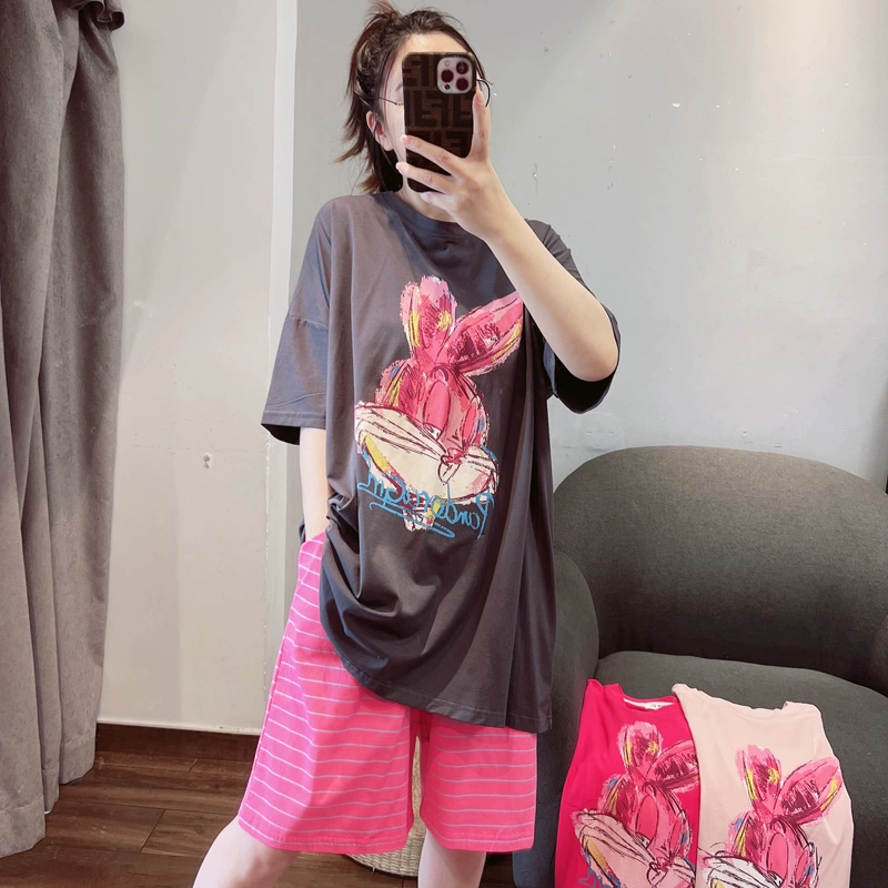 HEARMES شورت وبيجامة نسائية من القطن الخالص على شكل أرنب أصلي