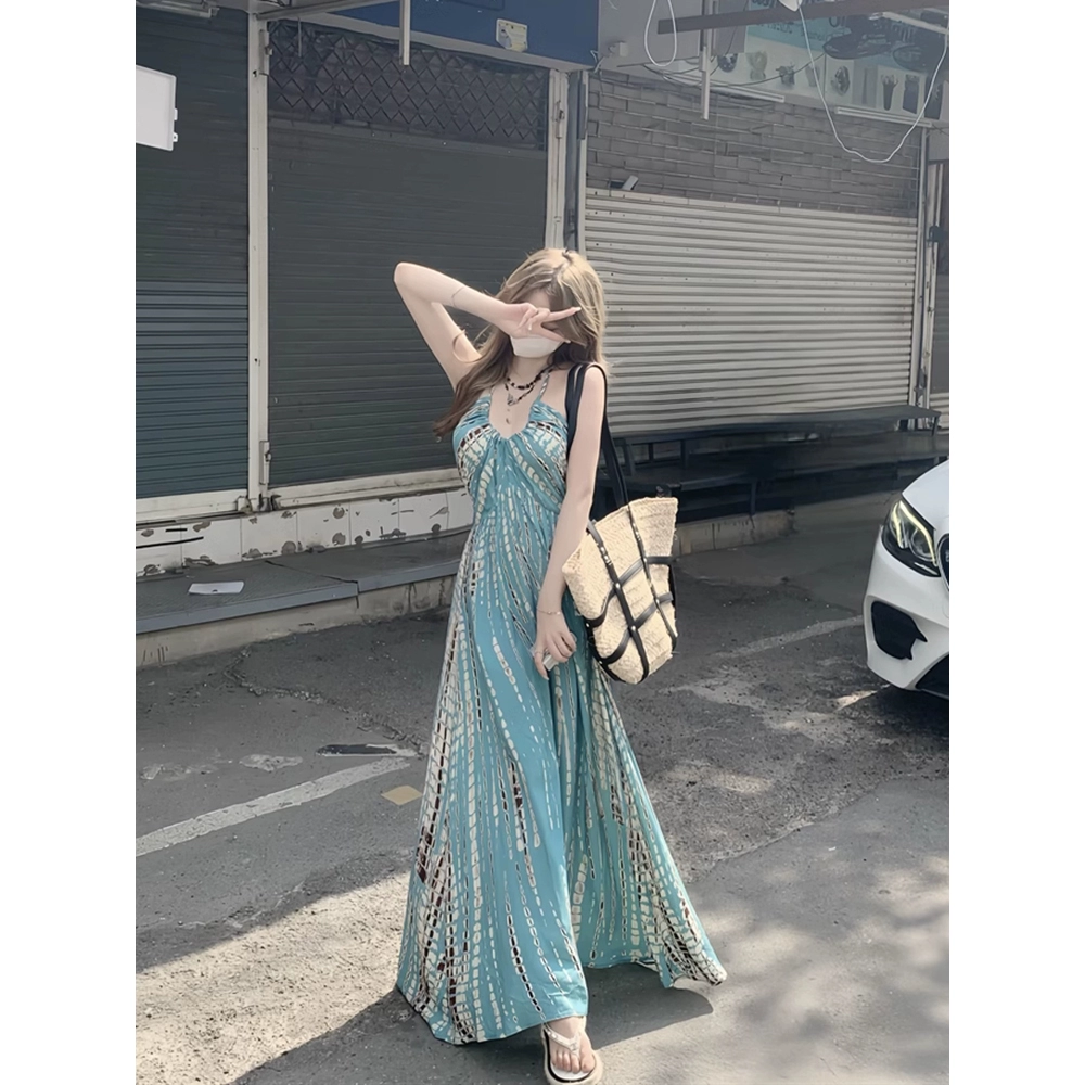تنورة متأرجحة صيفية على شاطئ البحر بدون ظهر مع رقبة رسن