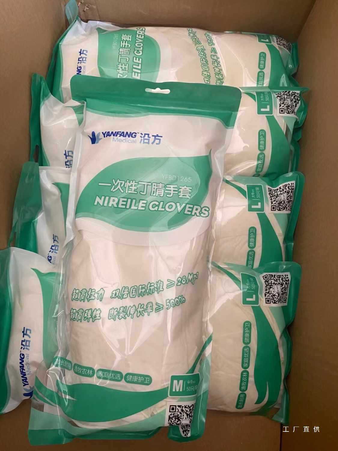 قفازات US4A مربعة يمكن التخلص منها من الدرجة الغذائية بسمك 12 بوصة من النتريل المتين المقاوم للماء واليد العاملة
