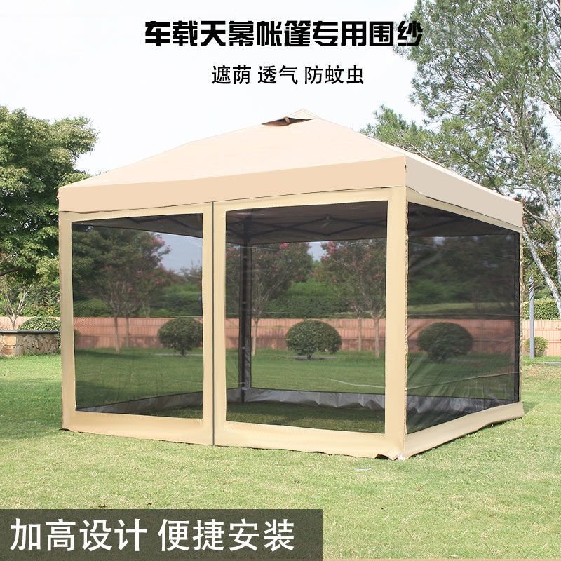 خيمة سيارة خاصة من قماش الغزل بأربعة جوانب قابلة للتنفس ومضادة للبعوض في الهواء الطلق للتخييم والعشاء شبكية