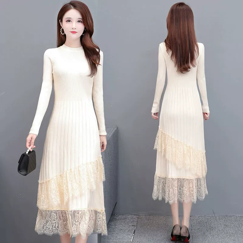 محبوك نمط الدانتيل سترة طويلة سميكة المخملية