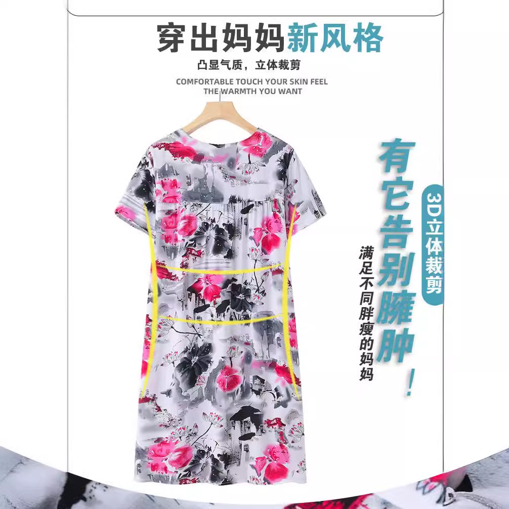 بيجامة صيفية رقيقة للأم فضفاضة من القطن الصناعي فستان نوم نسائي صيفي بأكمام قصيرة