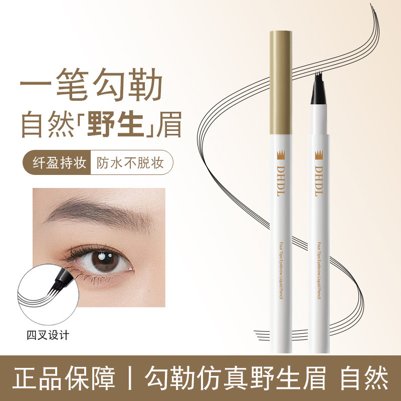 DHDL رباعية شوكة قلم الحواجب مقاوم للماء مقاوم للعرق الطبيعي ثلاثي الأبعاد الجذر واضح البرية الحاجب القلم متعدد المياه الحاجب القلم