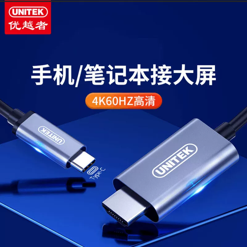 هاتف محمول متفوق (UNITEK) من النوع c إلى hdmi متصل بالتلفزيون على نفس الشاشة متصل بكابل عرض عالي الوضوح dp