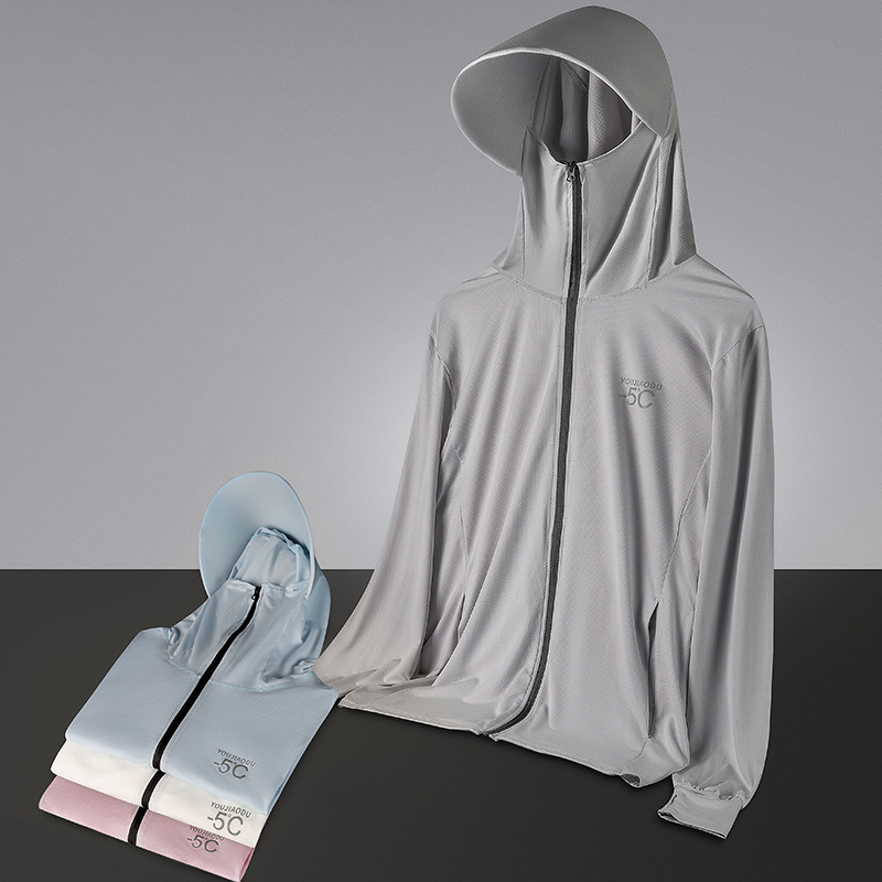 ملابس واقية من الشمس مصنوعة من الحرير الجليدي للرجال والنساء صيفية مقاومة للأشعة فوق البنفسجية وخفيفة الوزن وقابلة للتنفس والرياضات الخارجية معطف غير رسمي ملابس جلدية