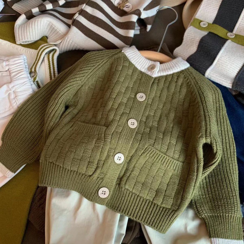 موري ريترو الكورية نمط الخريف جديد الفتيان والفتيات سترة محبوكة النمط الغربي الأطفال سترة معطف علوي