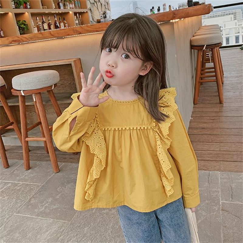 الفتيات الدانتيل قميص صغير ومتوسط الحجم للأطفال 2024 نمط جديد قميص الربيع والخريف الطفل النمط الغربي دمية الكورية قميص