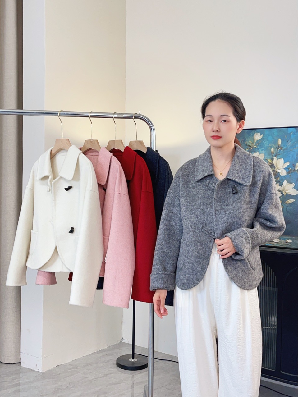 0609-163 خريف/شتاء عالي الجودة سميك 100 صوف بوتيك معطف صوف على الوجهين ملابس نسائية
