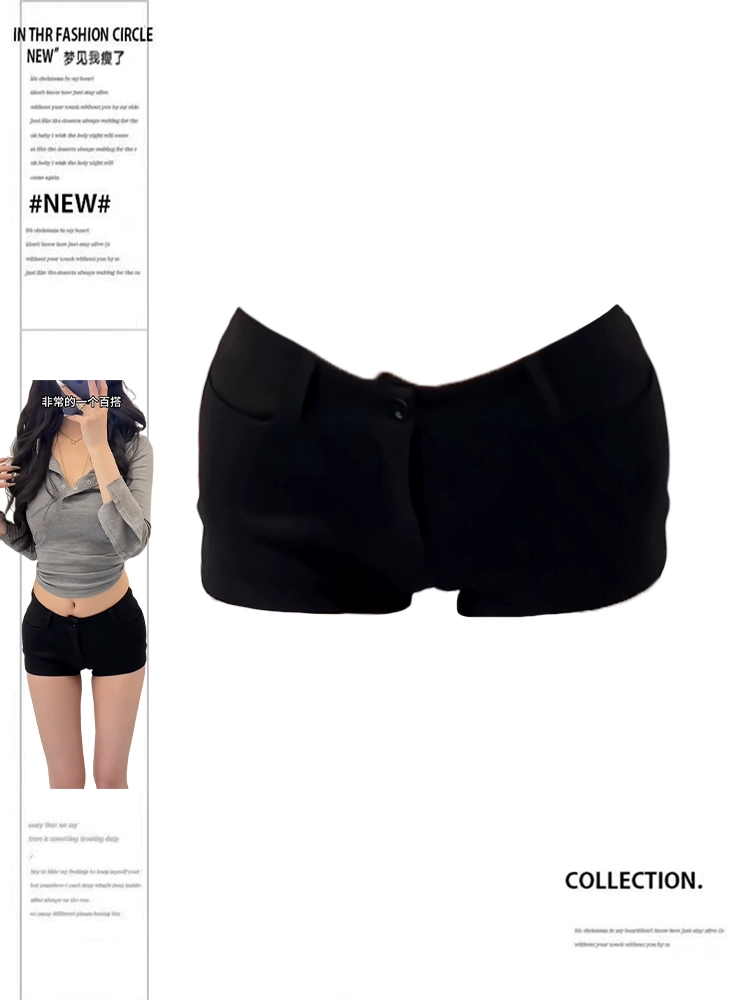 مقاس كبير 2024 شورت أمريكي مثير ونحيف للغاية بنمط جديد 2024 سراويل نسائية منخفضة الخصر سوداء مرنة غير رسمية ضيقة