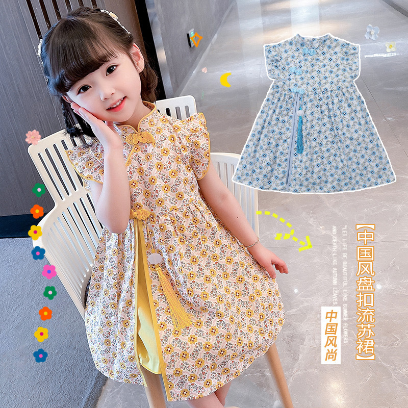 فستان بناتي لصيف 2024 وصل حديثًا تنورة منقوشة بالزهور تنورة شيونغسام تنورة هانفو صيفية للأطفال البنات