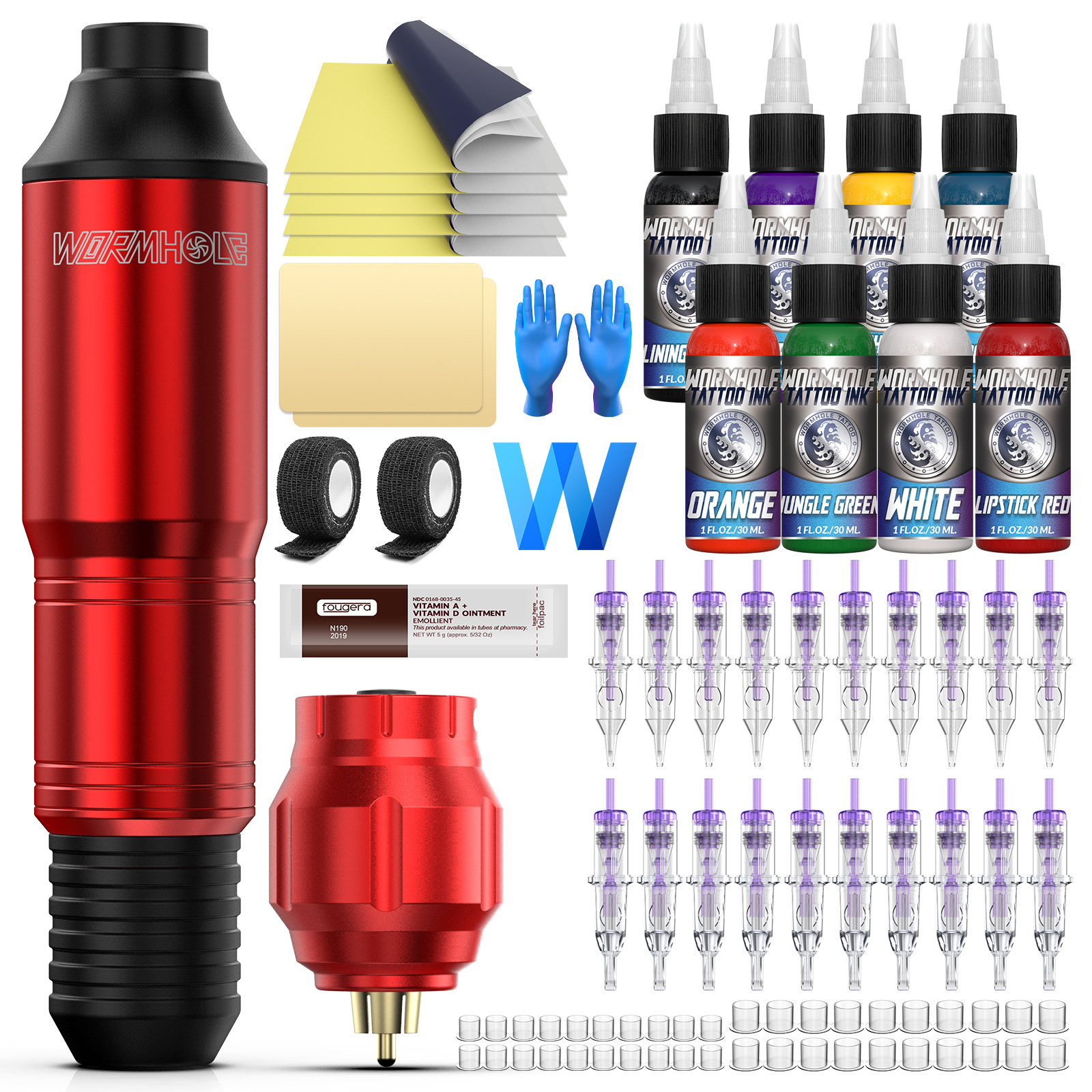 مجموعة الوشم اللاسلكية Explosions مع 8 زجاجات من الصبغة عالية الجودة 30 مل 20 خط قطع إبرة قطعة واحدة ضباب WTK214