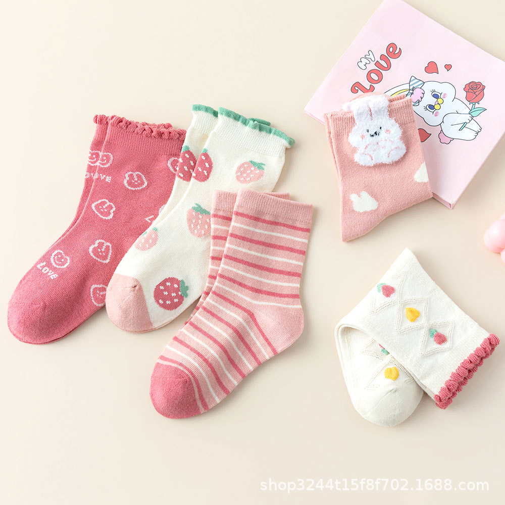 الكرتون المطبوعة الفراولة فتاة الجلد ودية مريحة كل مباراة متوسطة الحجم الجوارب رقيقة تنفس جوارب بناتي 5 زوج حزمة