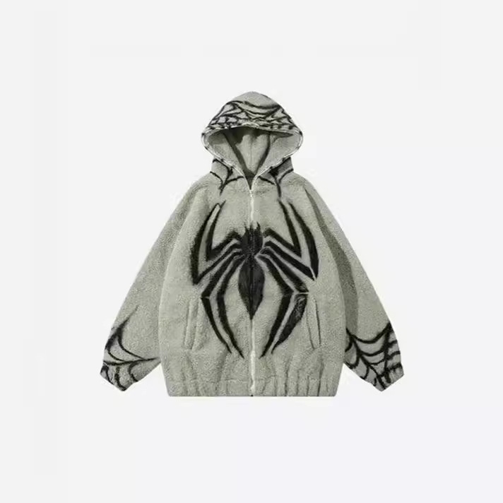 الخريف والشتاء أزياء الشارع الأمريكي الرجعية y2g العنكبوت مصبوغ رذاذ سترة للرجال والنساء نفس السحاب مقنعين
