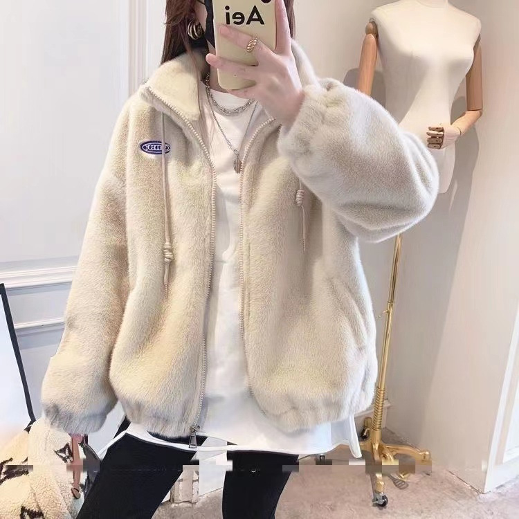 معطف فرو صناعي بتصميم كوري عبر الحدود شتوي مبطن بالصوف سميك 2023 معطف فضفاض بياقة واقفة جديد للنساء