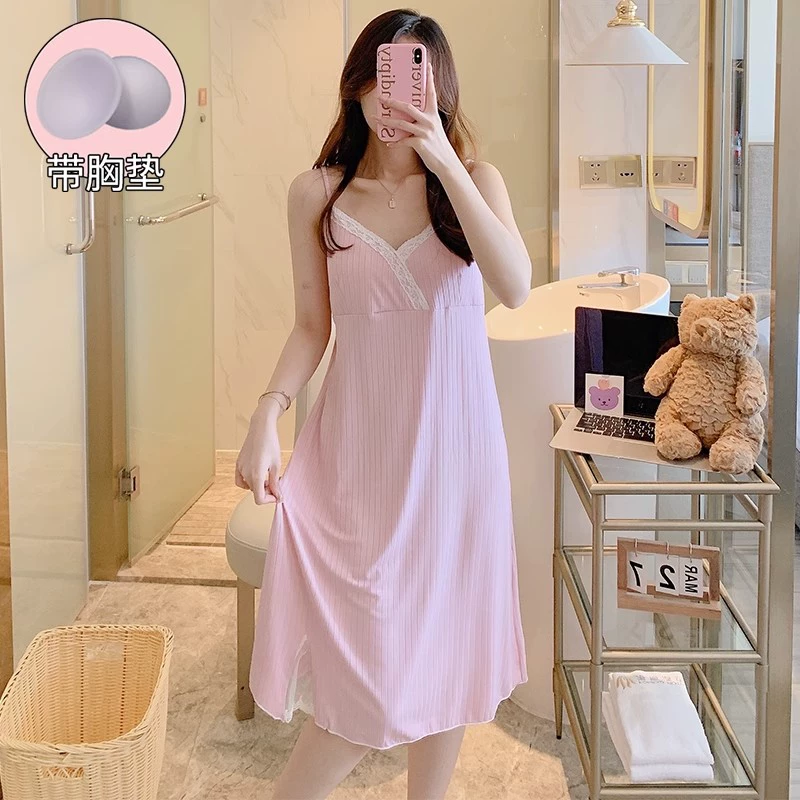 المرأة حجم كبير الحمالات فستان النوم 200 جين موسم الصيف الجليد الشريط وسادة للصدر منامة النساء الحوامل مشروط ملابس المنزل ملابس خارجية