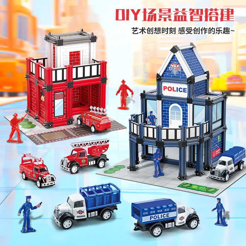 مشهد محاكاة حريق الشرطة لبنات بناء الجسيمات الكبيرة المجمعة للأطفال الأولاد ألعاب تعليمية هدية