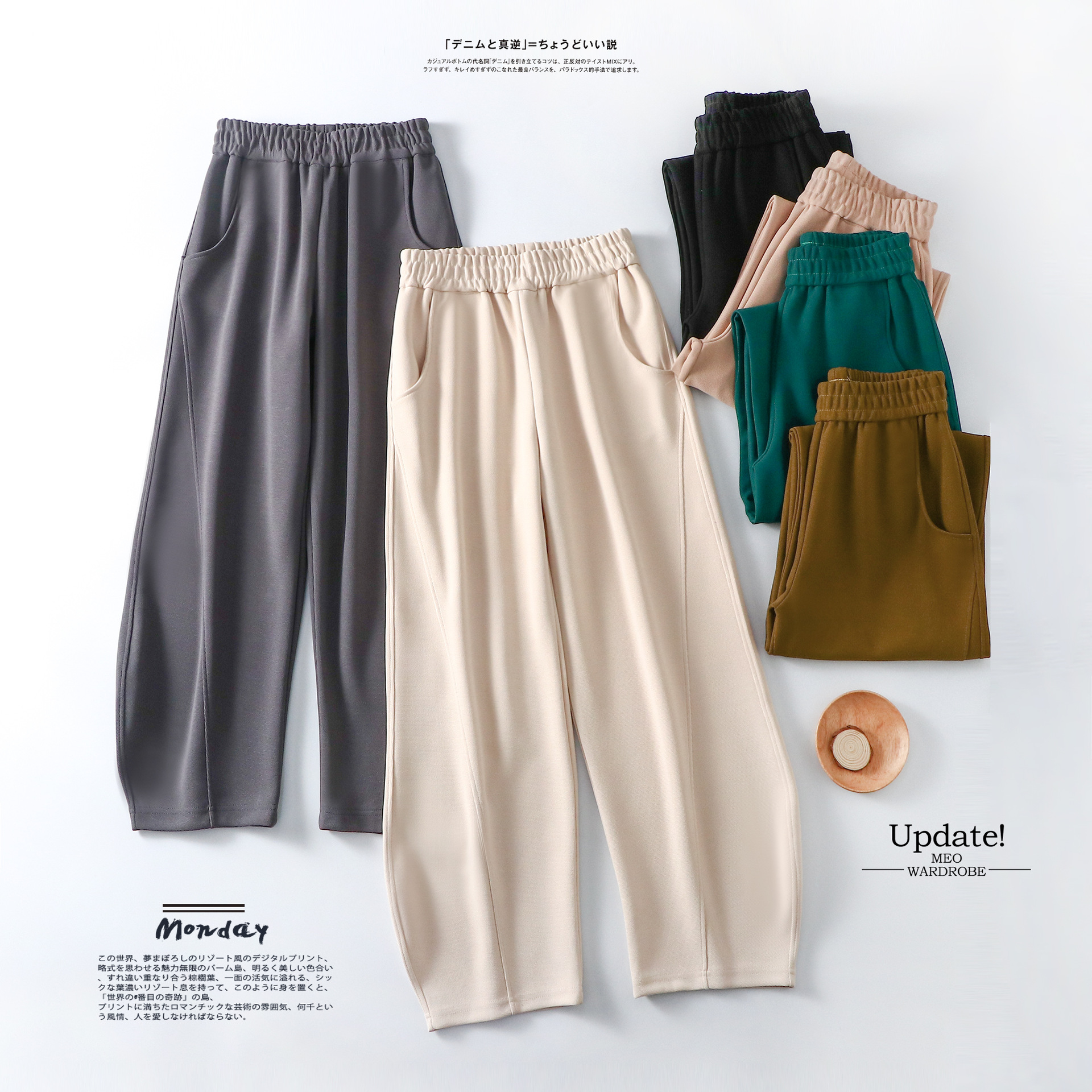 سروال قطن لؤلؤي واسع الساق للنساء عالي الخصر واسع العرض للتنحيف ربيع جديد غير رسمي لتقليل العمر رمادي مستقيم سراويل رياضية عصرية