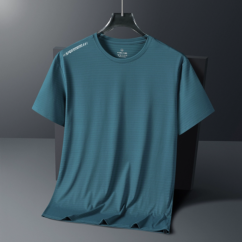 تي شيرت شبكي كبير الحجم بأكمام قصيرة للرجال ملابس صيفية رياضية من الحرير الجليدي ملابس سريعة الجفاف للجري واللياقة البدنية وتدريبات تي شيرت للرجال