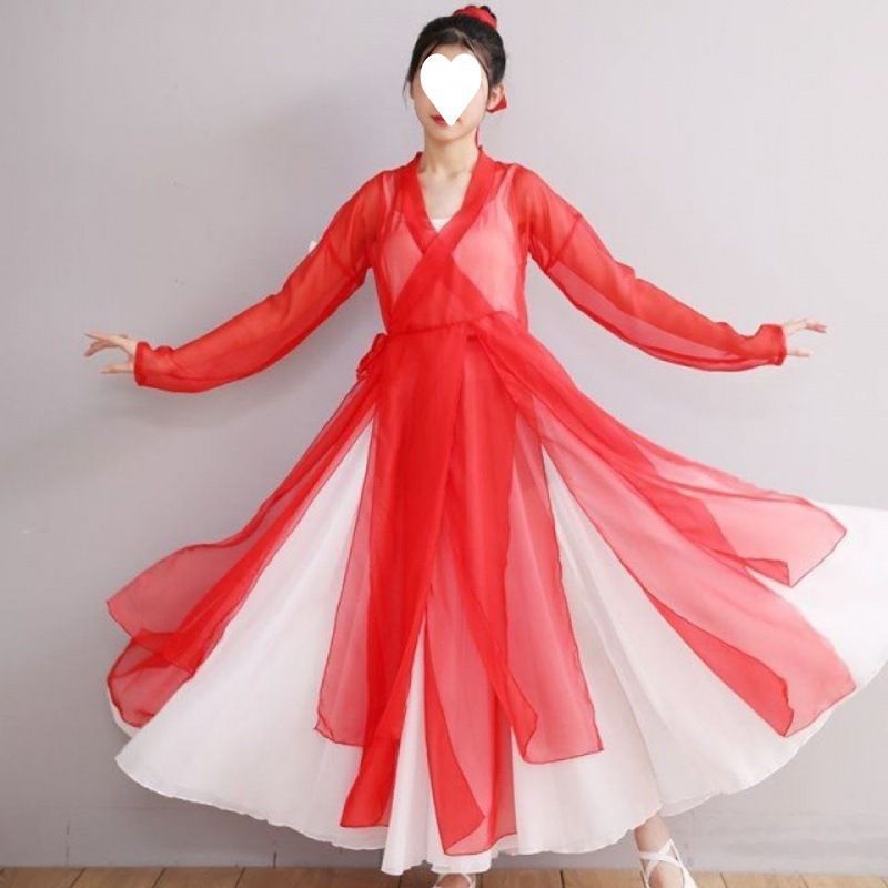 بدلة الرقص الكلاسيكية Wanjiang بدلة ممارسة الرقص القديمة مروحة نمط الرقص الحجاب ملابس رداء بدلة الأداء خط بيبا للسيدات