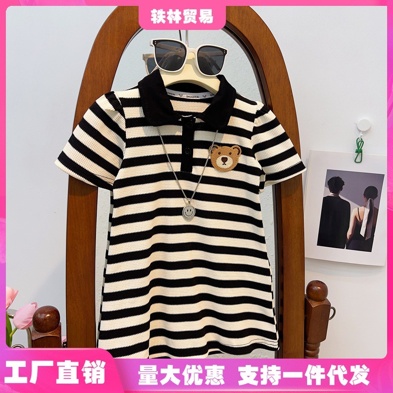الفتيات قصيرة الأكمام قميص الصيف جديد أنيق للأطفال مخطط تي شيرت الفتيات عارضة أعلى ملابس الصيف