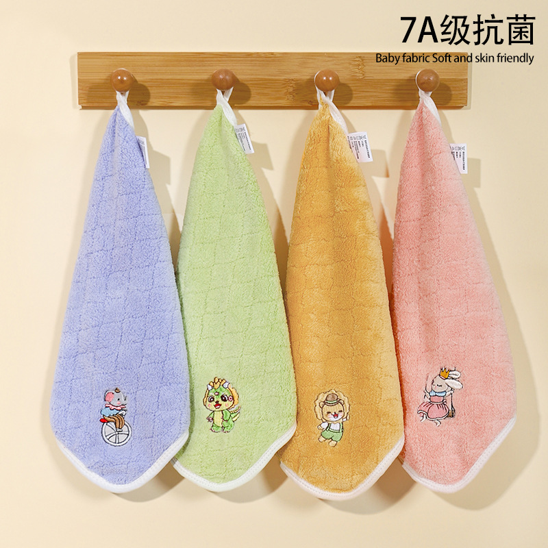 منشفة وجه للأطفال مطرزة برسوم كرتونية من الصوف المرجاني، منشفة وجه للأطفال، منديل أطفال مربع صغير فائق النعومة