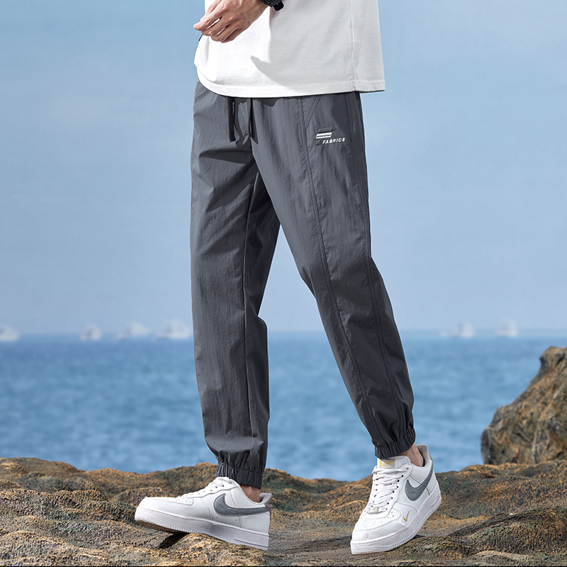 Anyang سراويل تقليدية للرجال 2024 الصيف الحرير الجليدي التجفيف السريع الرياضة بنطال رفيع ربط الكاحل الرجال وزرة بنطلون بالجملة