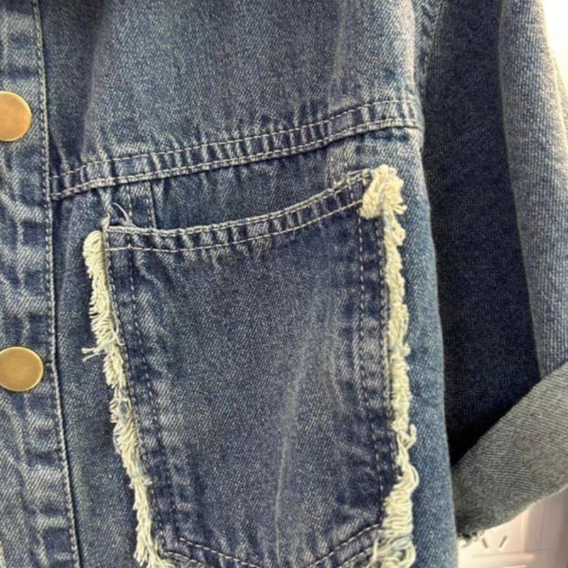 سترة قميص دينم بأكمام قصيرة للنساء صيفية جديدة فضفاضة وتصميم رفيع وقميص قصير متخصص