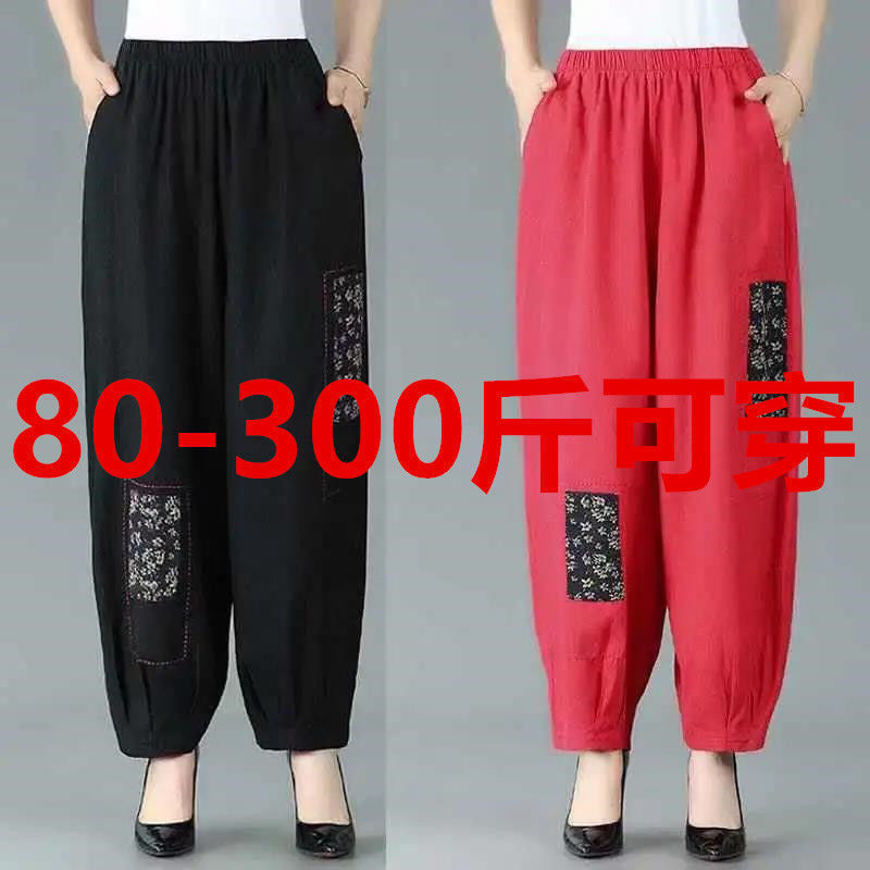 حجم غريب الدهون 300 كجم ارتفاع الخصر سروال جديد المرأة الصيف منتصف العمر وكبار السن العرقية نمط غير رسمي سراويلي حريمي النساء