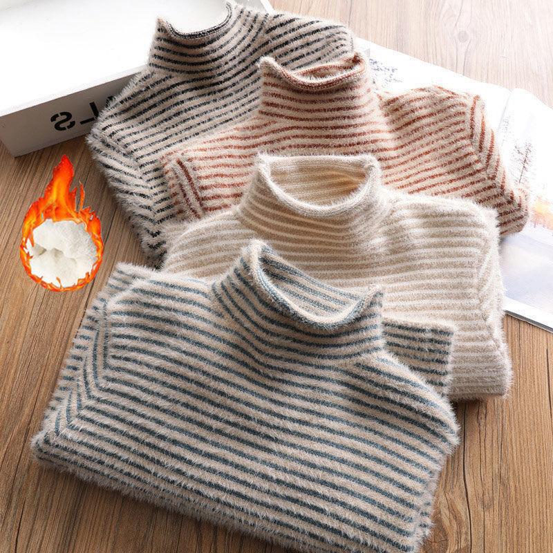 الأطفال مخطط المنك الصوف سترة الخريف والشتاء جديد الفتيات الصوف مبطن سميكة محبوك سترة الكورية نمط الأولاد قاعدة قميص