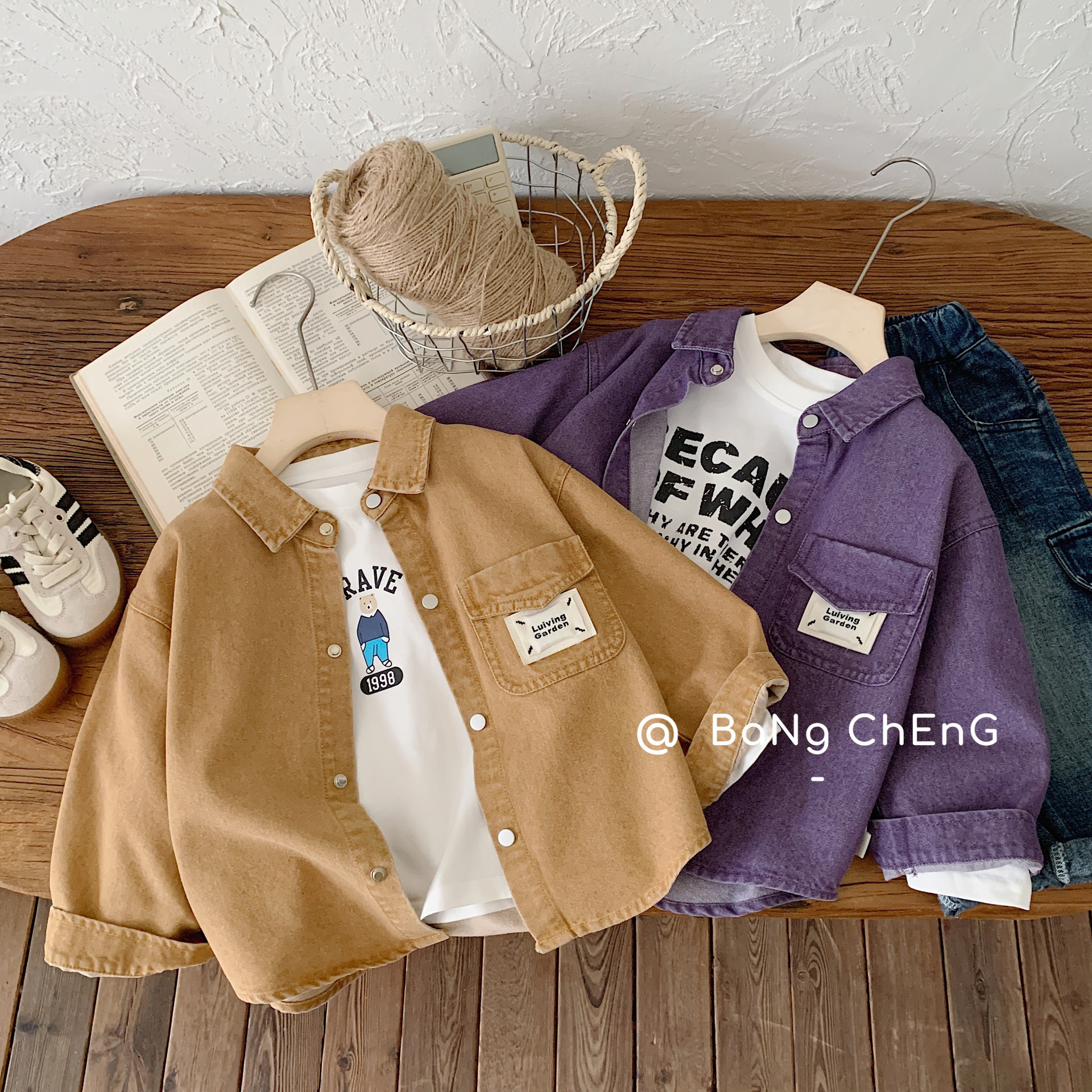 ربيع جديد ملابس الأطفال أفضل 2024 ربيع الأولاد معطف الأطفال وضع العلامات قميص طويل الأكمام الدنيم معطف التجارة الخارجية