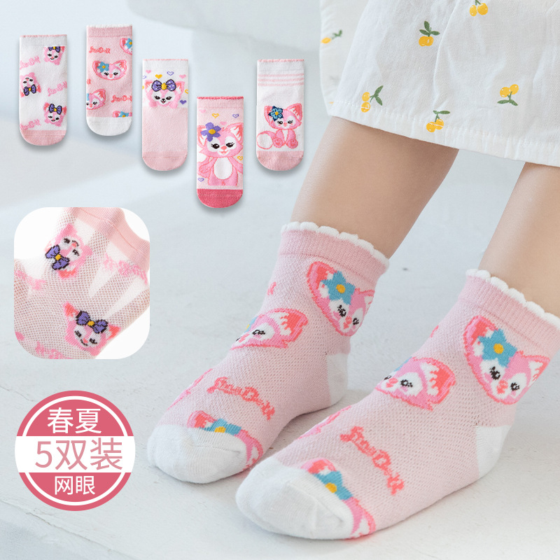 جوارب أطفال للربيع والصيف جوارب بناتي رفيعة جوارب شبكية قابلة للتنفس جوارب أطفال كارتونية لطيفة بالجملة