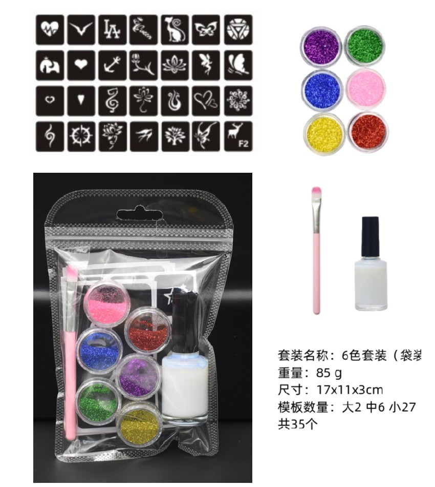 مجموعة بسيطة من 6 ألوان لامعة شبه دائمة لرسم الجسم، مجموعة وشم لامعة لمرحلة المكياج عبر الحدود