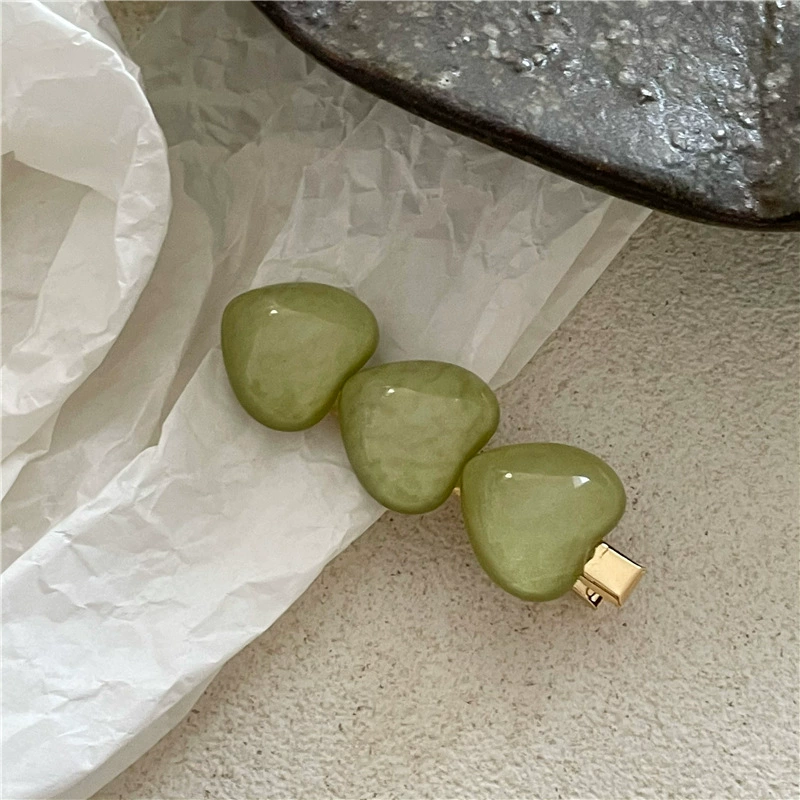 دبوس شعر بناتي ذو لون هلامي شفاف على شكل قلب خوخ صغير