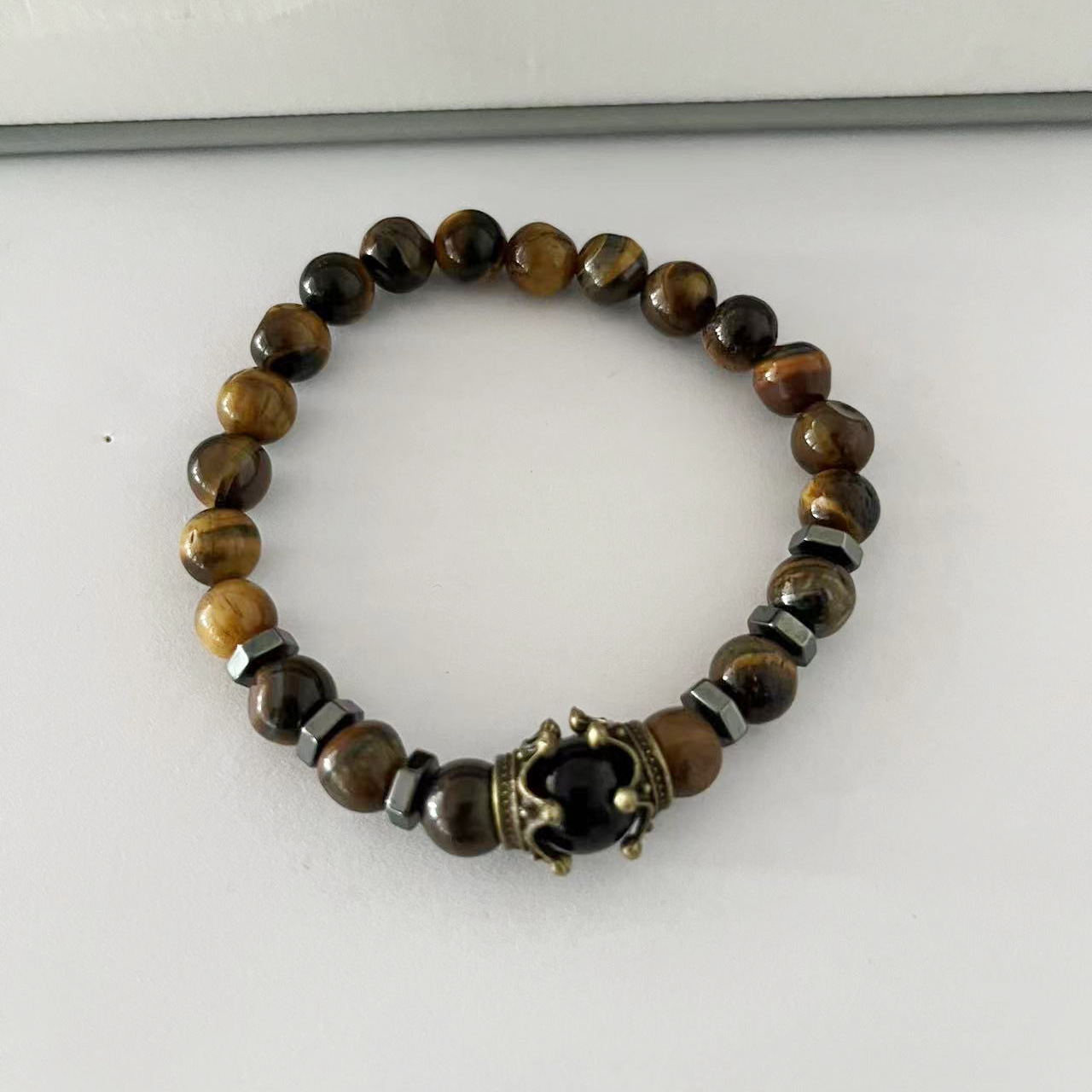 سوار الأزياء الأوروبية والأمريكية عبر الحدود الأمازون انفجار سبائك التاج الحجر الطبيعي عين النمر مطرز سوار الرجال