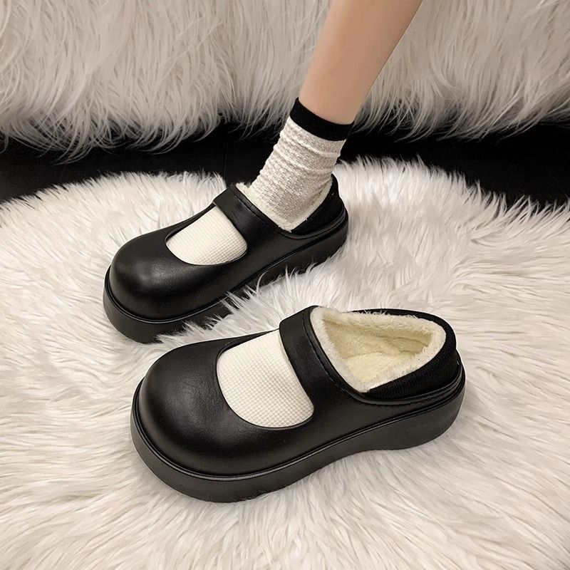 أحذية ماري جين النسائية الشتوية المبطنة بالصوف ملابس خارجية من القطن باوتو دافئة من الداخل مانعة للانزلاق من المصنعين بالجملة