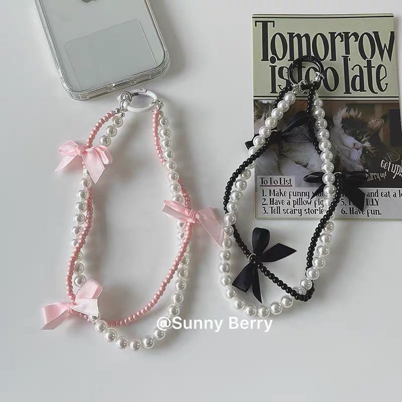 المتخصصة فتاة الحلو بارد الوردي القوس اللؤلؤ محكم اليدوية مطرز سلسلة الهاتف المحمول شنقا سلسلة مفتاح حقيبة قلادة