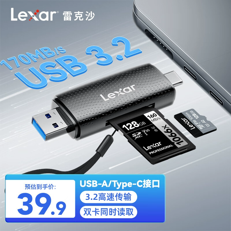 Rex Sha Typec Card Reader two -in -USB3.2 واجهة مزدوجة TF/SD بطاقة الذاكرة OTG Reader