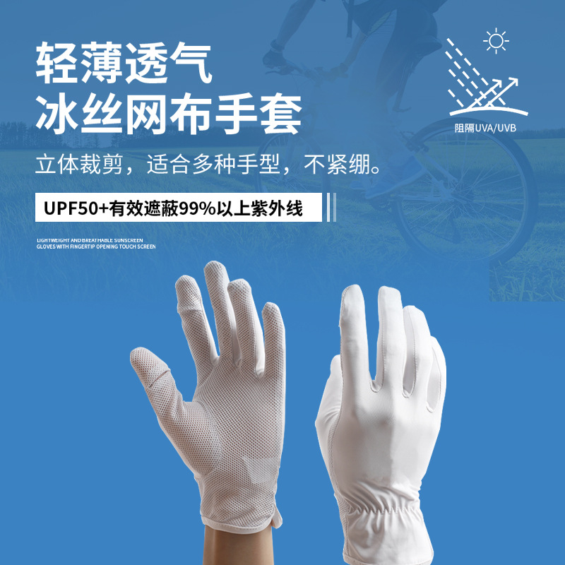 قفازات الحماية من الشمس للرجال والنساء أثناء القيادة في الهواء الطلق، قفازات ركوب الخيل للحماية من الأشعة فوق البنفسجية، قفازات شبكية من الحرير الجليدي قابلة للتنفس، قفازات كاملة الأصابع بالجملة